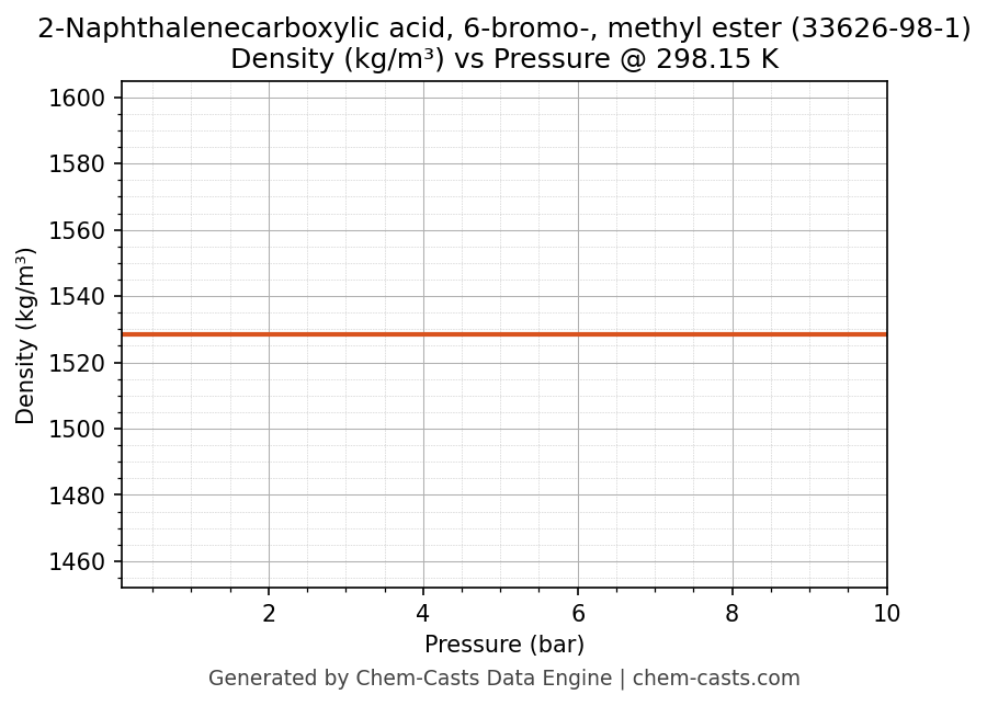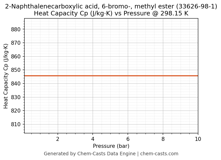 This page presents the pressure-dependent thermodynamic and transport properties of 2-Naphthalenecarboxylic acid, 6-bromo-, methyl ester (CAS 33626-98-1) calculated at a constant temperature of 298 K (25 °C) over the pressure range 0.10-10 bar.