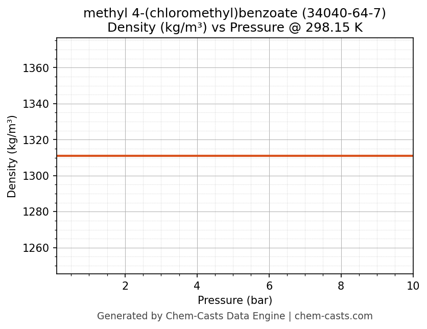 This page presents the pressure-dependent thermodynamic and transport properties of methyl 4-(chloromethyl)benzoate (CAS 34040-64-7) calculated at a constant temperature of 298 K (25 °C) over the pressure range 0.10-10 bar.