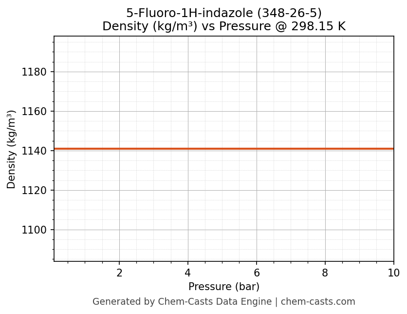 This page presents the pressure-dependent thermodynamic and transport properties of 5-Fluoro-1H-indazole (CAS 348-26-5) calculated at a constant temperature of 298 K (25 °C) over the pressure range 0.10-10 bar.