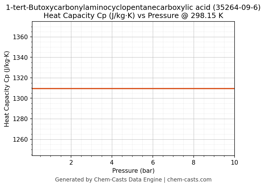 This page presents the pressure-dependent thermodynamic and transport properties of 1-tert-Butoxycarbonylaminocyclopentanecarboxylic acid (CAS 35264-09-6) calculated at a constant temperature of 298 K (25 °C) over the pressure range 0.10-10 bar.