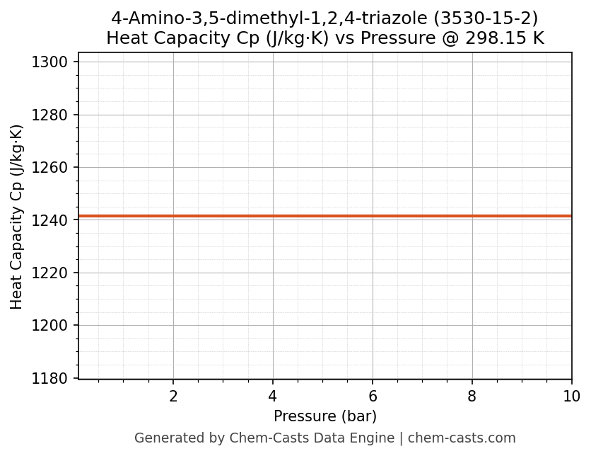 This page presents the pressure-dependent thermodynamic and transport properties of 4-Amino-3,5-dimethyl-1,2,4-triazole (CAS 3530-15-2) calculated at a constant temperature of 298 K (25 °C) over the pressure range 0.10-10 bar.