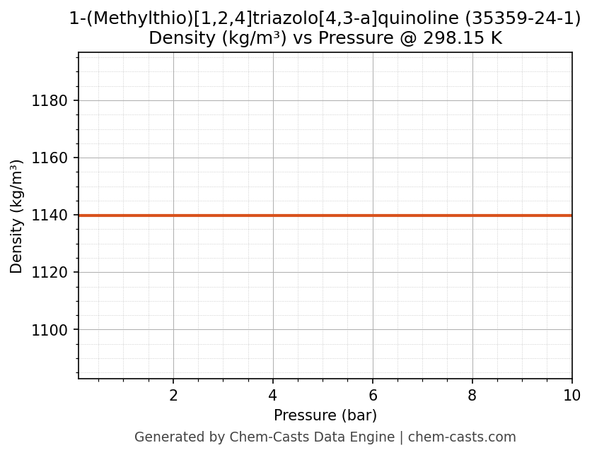 This page presents the pressure-dependent thermodynamic and transport properties of 1-(Methylthio)[1,2,4]triazolo[4,3-a]quinoline (CAS 35359-24-1) calculated at a constant temperature of 298 K (25 °C) over the pressure range 0.10-10 bar.