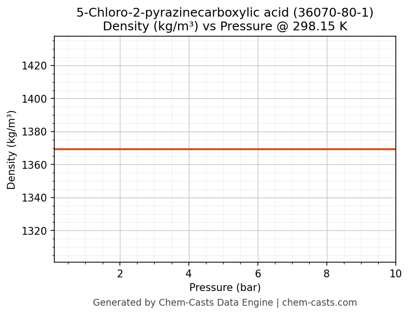 This page presents the pressure-dependent thermodynamic and transport properties of 5-Chloro-2-pyrazinecarboxylic acid (CAS 36070-80-1) calculated at a constant temperature of 298 K (25 °C) over the pressure range 0.10-10 bar.