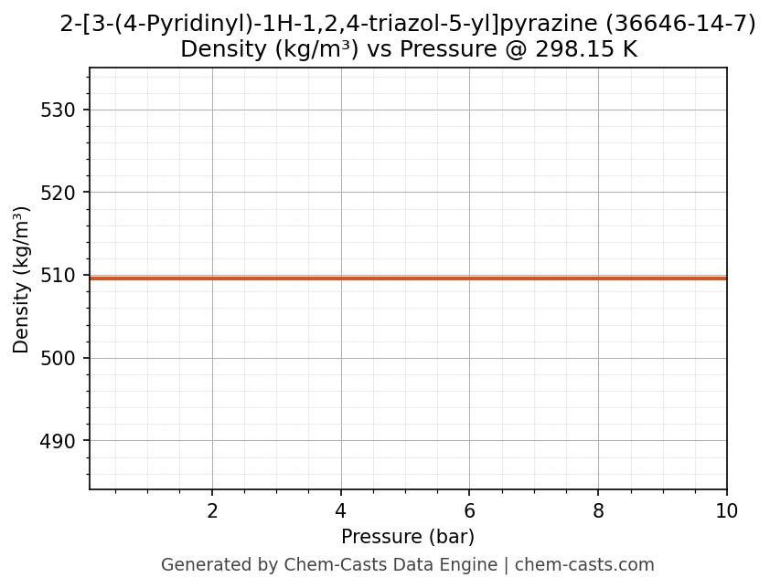 This page presents the pressure-dependent thermodynamic and transport properties of 2-[3-(4-Pyridinyl)-1H-1,2,4-triazol-5-yl]pyrazine (CAS 36646-14-7) calculated at a constant temperature of 298 K (25 °C) over the pressure range 0.10-10 bar.