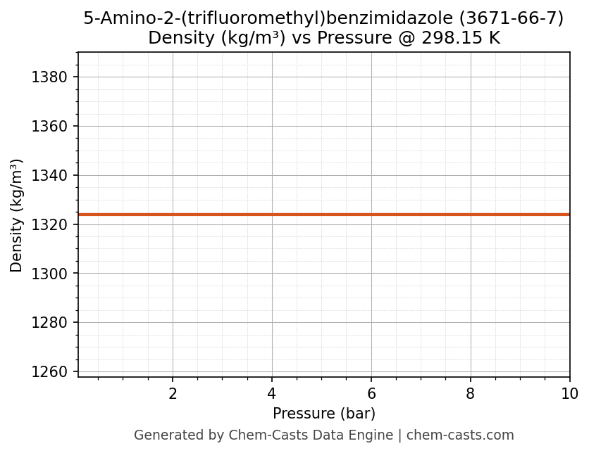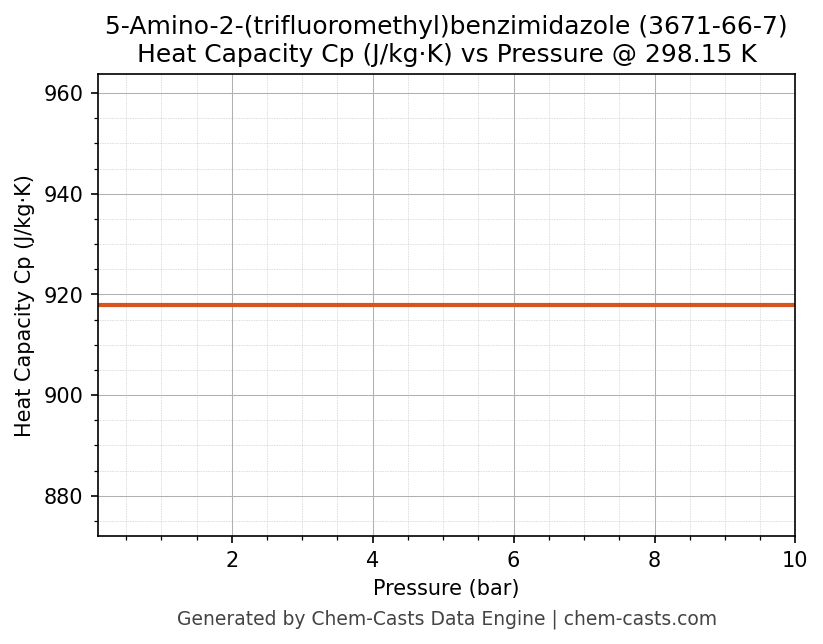 This page presents the pressure-dependent thermodynamic and transport properties of 5-Amino-2-(trifluoromethyl)benzimidazole (CAS 3671-66-7) calculated at a constant temperature of 298 K (25 °C) over the pressure range 0.10-10 bar.