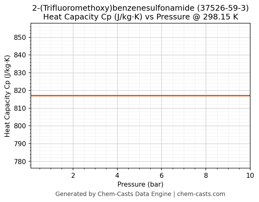 This page presents the pressure-dependent thermodynamic and transport properties of 2-(Trifluoromethoxy)benzenesulfonamide (CAS 37526-59-3) calculated at a constant temperature of 298 K (25 °C) over the pressure range 0.10-10 bar.