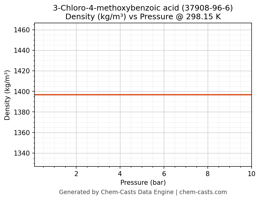 This page presents the pressure-dependent thermodynamic and transport properties of 3-Chloro-4-methoxybenzoic acid (CAS 37908-96-6) calculated at a constant temperature of 298 K (25 °C) over the pressure range 0.10-10 bar.