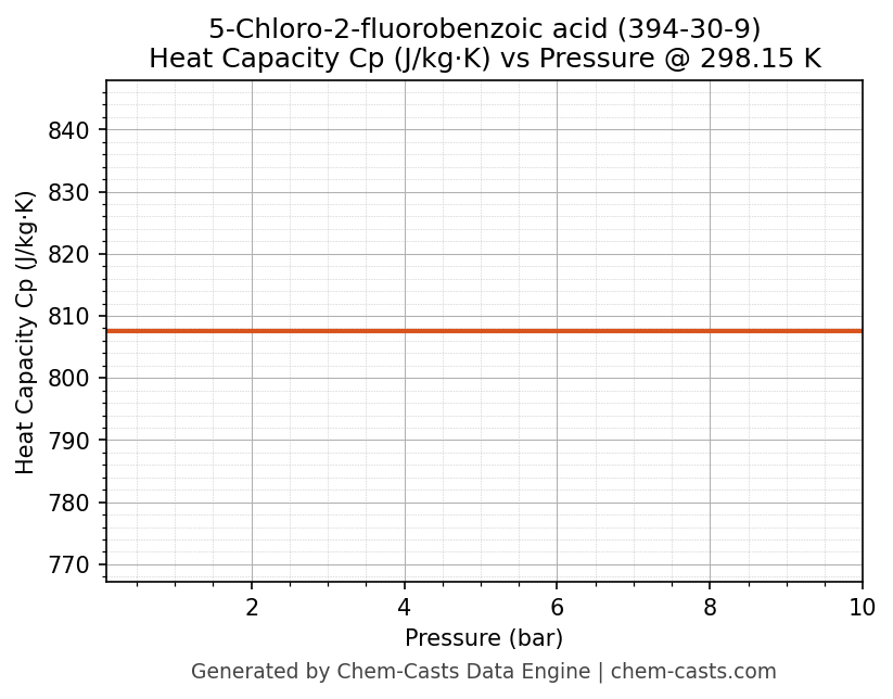 This page presents the pressure-dependent thermodynamic and transport properties of 5-Chloro-2-fluorobenzoic acid (CAS 394-30-9) calculated at a constant temperature of 298 K (25 °C) over the pressure range 0.10-10 bar.