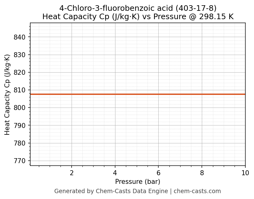 This page presents the pressure-dependent thermodynamic and transport properties of 4-Chloro-3-fluorobenzoic acid (CAS 403-17-8) calculated at a constant temperature of 298 K (25 °C) over the pressure range 0.10-10 bar.