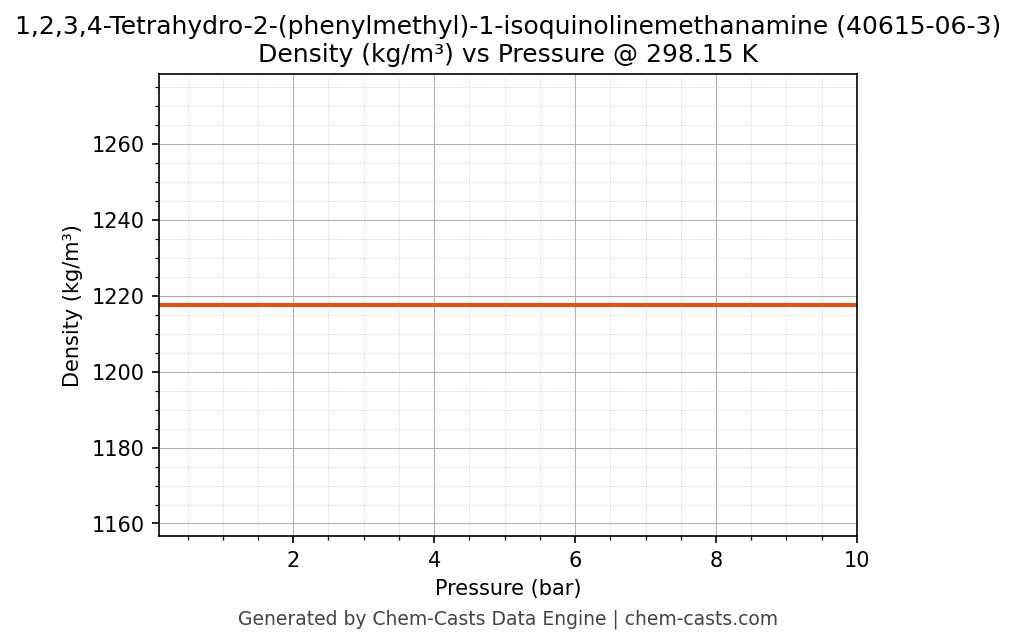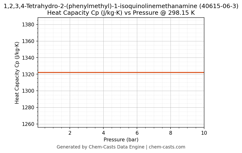 This page presents the pressure-dependent thermodynamic and transport properties of 1,2,3,4-Tetrahydro-2-(phenylmethyl)-1-isoquinolinemethanamine (CAS 40615-06-3) calculated at a constant temperature of 298 K (25 °C) over the pressure range 0.10-10 bar.