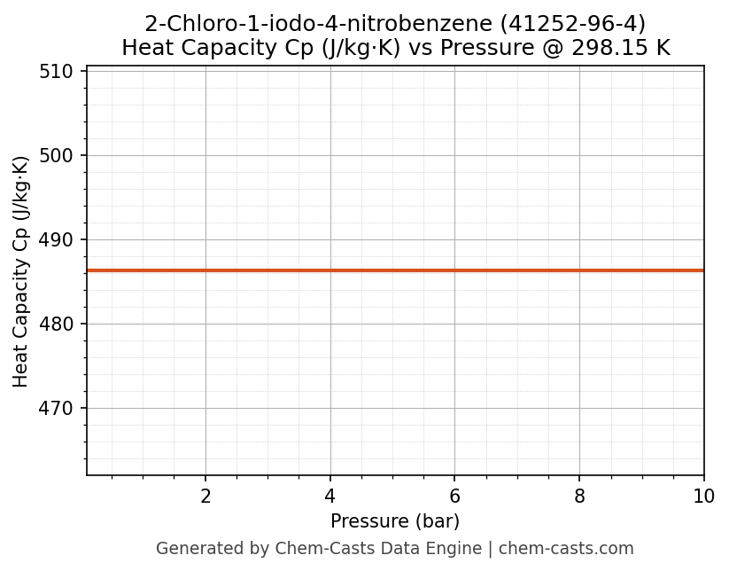 This page presents the pressure-dependent thermodynamic and transport properties of 2-Chloro-1-iodo-4-nitrobenzene (CAS 41252-96-4) calculated at a constant temperature of 298 K (25 °C) over the pressure range 0.10-10 bar.