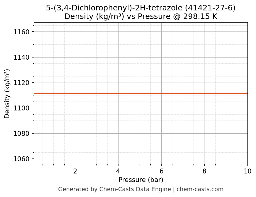 This page presents the pressure-dependent thermodynamic and transport properties of 5-(3,4-Dichlorophenyl)-2H-tetrazole (CAS 41421-27-6) calculated at a constant temperature of 298 K (25 °C) over the pressure range 0.10-10 bar.