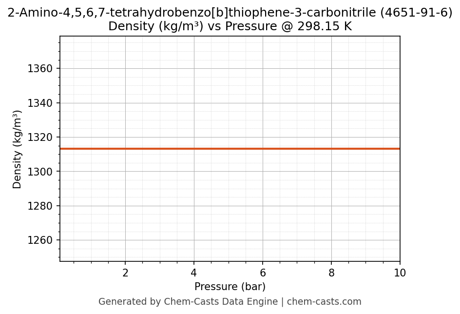![Density vs Pressure chart for 2-Amino-4,5,6,7-tetrahydrobenzo[b]thiophene-3-carbonitrile (CAS 4651-91-6)](https://chemcasts-prod.s3.ap-south-1.amazonaws.com/chem_plots_tconst/4651-91-6-density-tconst.png)