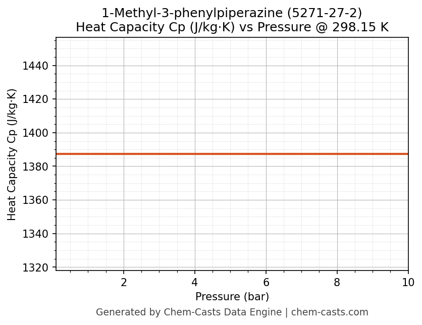 This page presents the pressure-dependent thermodynamic and transport properties of 1-Methyl-3-phenylpiperazine (CAS 5271-27-2) calculated at a constant temperature of 298 K (25 °C) over the pressure range 0.10-10 bar.