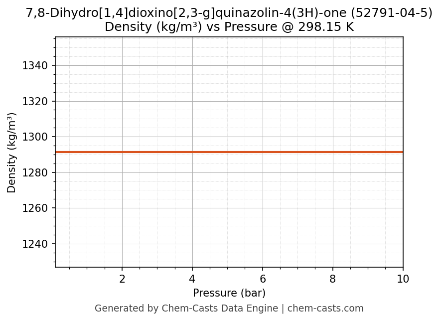 This page presents the pressure-dependent thermodynamic and transport properties of 7,8-Dihydro[1,4]dioxino[2,3-g]quinazolin-4(3H)-one (CAS 52791-04-5) calculated at a constant temperature of 298 K (25 °C) over the pressure range 0.10-10 bar.