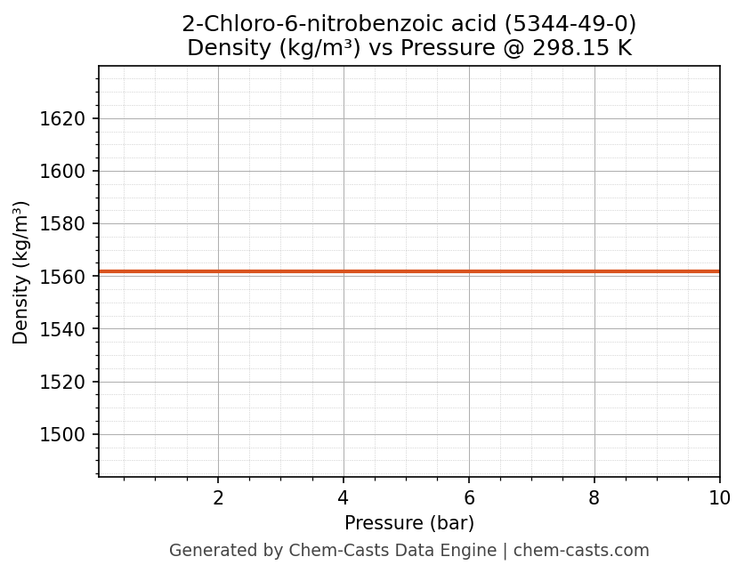 This page presents the pressure-dependent thermodynamic and transport properties of 2-Chloro-6-nitrobenzoic acid (CAS 5344-49-0) calculated at a constant temperature of 298 K (25 °C) over the pressure range 0.10-10 bar.