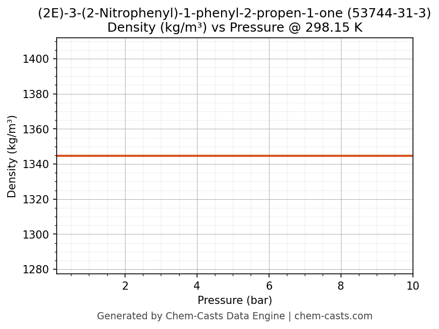 This page presents the pressure-dependent thermodynamic and transport properties of (2E)-3-(2-Nitrophenyl)-1-phenyl-2-propen-1-one (CAS 53744-31-3) calculated at a constant temperature of 298 K (25 °C) over the pressure range 0.10-10 bar.
