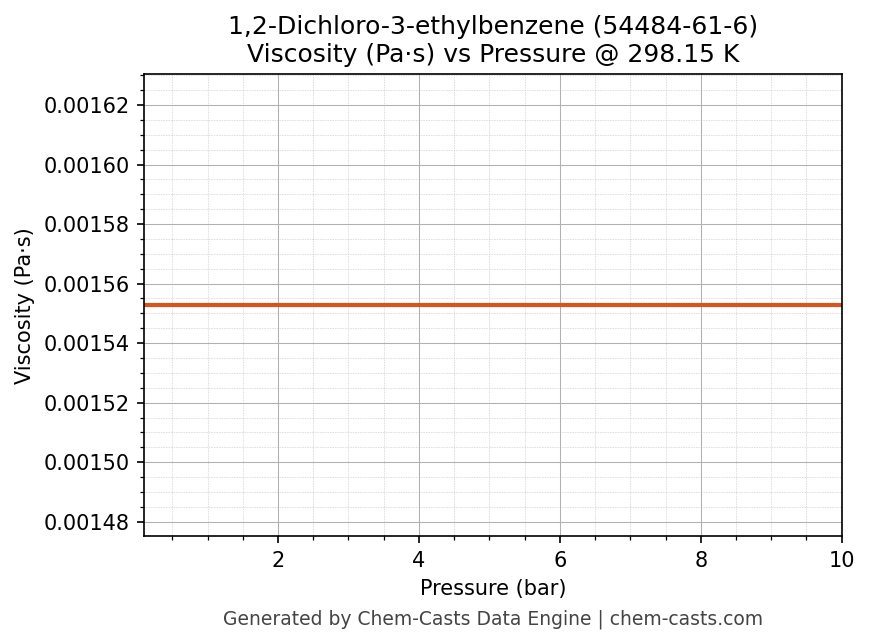 This page presents the pressure-dependent thermodynamic and transport properties of 1,2-Dichloro-3-ethylbenzene (CAS 54484-61-6) calculated at a constant temperature of 298 K (25 °C) over the pressure range 0.10-10 bar.