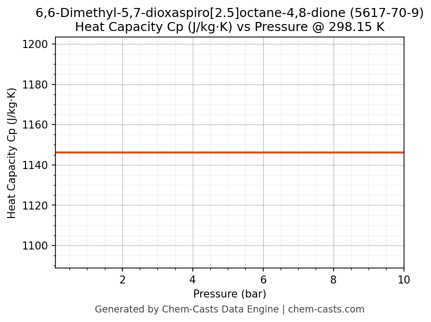 This page presents the pressure-dependent thermodynamic and transport properties of 6,6-Dimethyl-5,7-dioxaspiro[2.5]octane-4,8-dione (CAS 5617-70-9) calculated at a constant temperature of 298 K (25 °C) over the pressure range 0.10-10 bar.