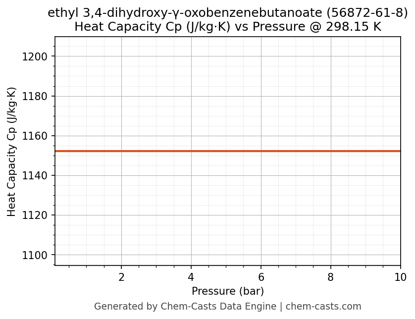 This page presents the pressure-dependent thermodynamic and transport properties of ethyl 3,4-dihydroxy-γ-oxobenzenebutanoate (CAS 56872-61-8) calculated at a constant temperature of 298 K (25 °C) over the pressure range 0.10-10 bar.