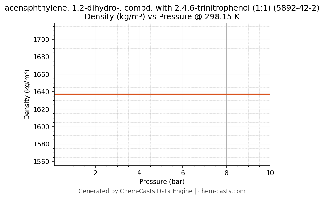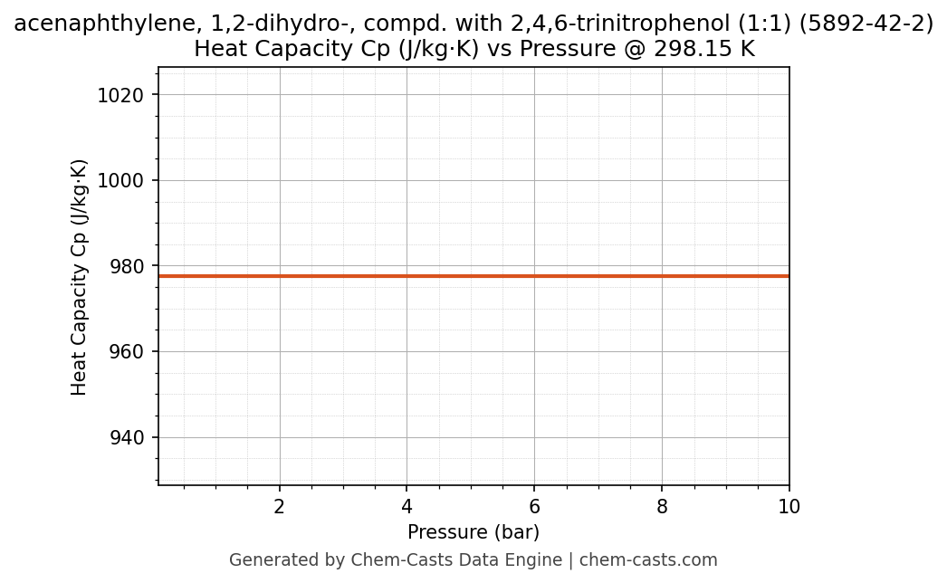 This page presents the pressure-dependent thermodynamic and transport properties of acenaphthylene, 1,2-dihydro-, compd. with 2,4,6-trinitrophenol (1:1) (CAS 5892-42-2) calculated at a constant temperature of 298 K (25 °C) over the pressure range 0.10-10 bar.
