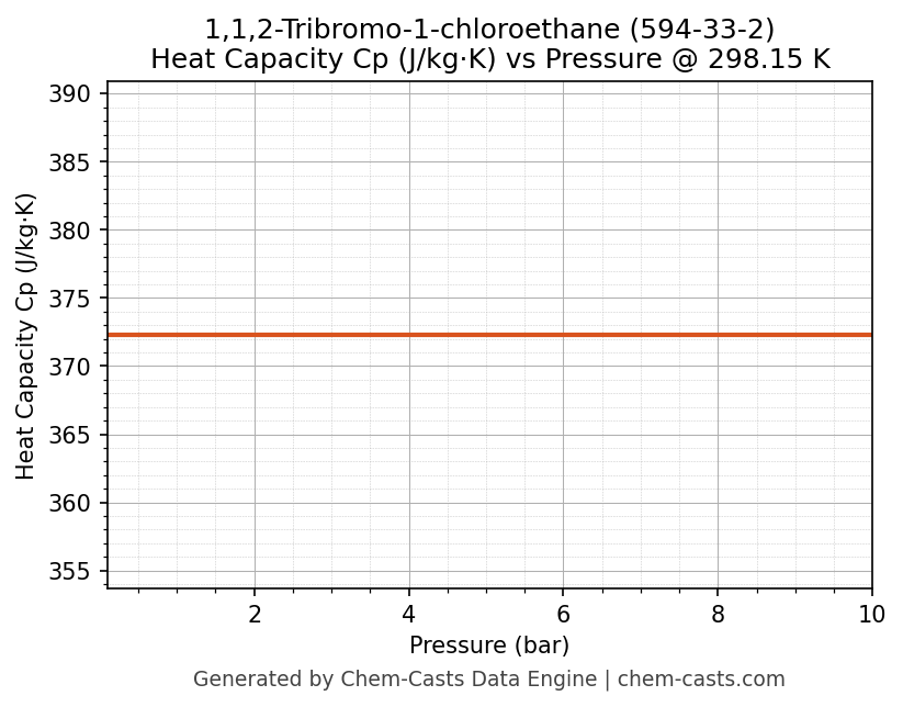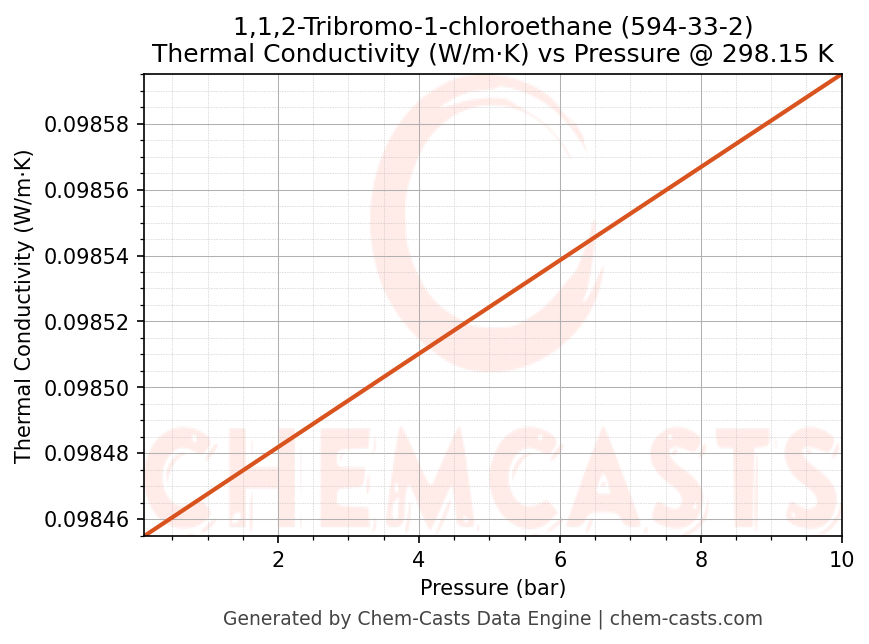 This page presents the pressure-dependent thermodynamic and transport properties of 1,1,2-Tribromo-1-chloroethane (CAS 594-33-2) calculated at a constant temperature of 298 K (25 °C) over the pressure range 0.10-10 bar.