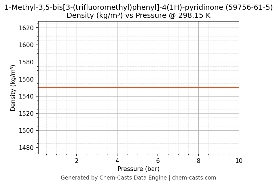 ![Density vs Pressure chart for 1-Methyl-3,5-bis[3-(trifluoromethyl)phenyl]-4(1H)-pyridinone (CAS 59756-61-5)](https://chemcasts-prod.s3.ap-south-1.amazonaws.com/chem_plots_tconst/59756-61-5-density-tconst.png)