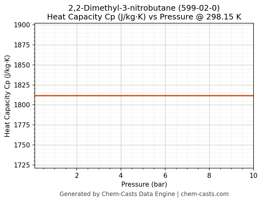 This page presents the pressure-dependent thermodynamic and transport properties of 2,2-Dimethyl-3-nitrobutane (CAS 599-02-0) calculated at a constant temperature of 298 K (25 °C) over the pressure range 0.10-10 bar.