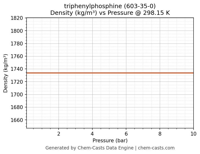 This page presents the pressure-dependent thermodynamic and transport properties of triphenylphosphine (CAS 603-35-0) calculated at a constant temperature of 298 K (25 °C) over the pressure range 0.10-10 bar.