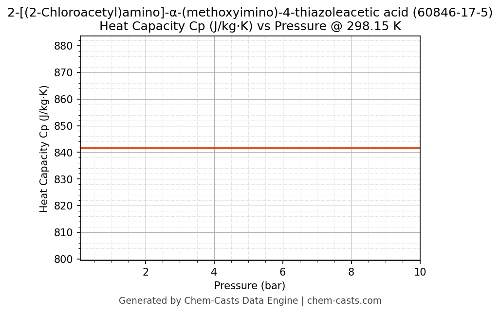 This page presents the pressure-dependent thermodynamic and transport properties of 2-[(2-Chloroacetyl)amino]-α-(methoxyimino)-4-thiazoleacetic acid (CAS 60846-17-5) calculated at a constant temperature of 298 K (25 °C) over the pressure range 0.10-10 bar.
