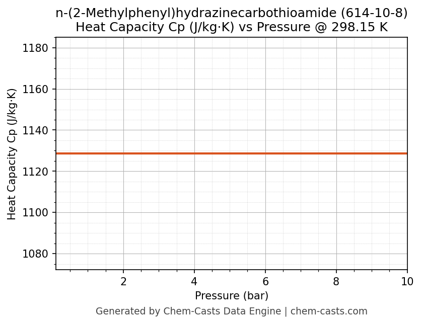 This page presents the pressure-dependent thermodynamic and transport properties of n-(2-Methylphenyl)hydrazinecarbothioamide (CAS 614-10-8) calculated at a constant temperature of 298 K (25 °C) over the pressure range 0.10-10 bar.