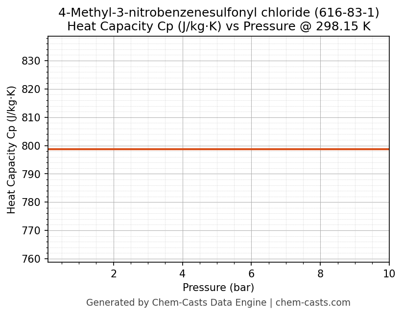 This page presents the pressure-dependent thermodynamic and transport properties of 4-Methyl-3-nitrobenzenesulfonyl chloride (CAS 616-83-1) calculated at a constant temperature of 298 K (25 °C) over the pressure range 0.10-10 bar.