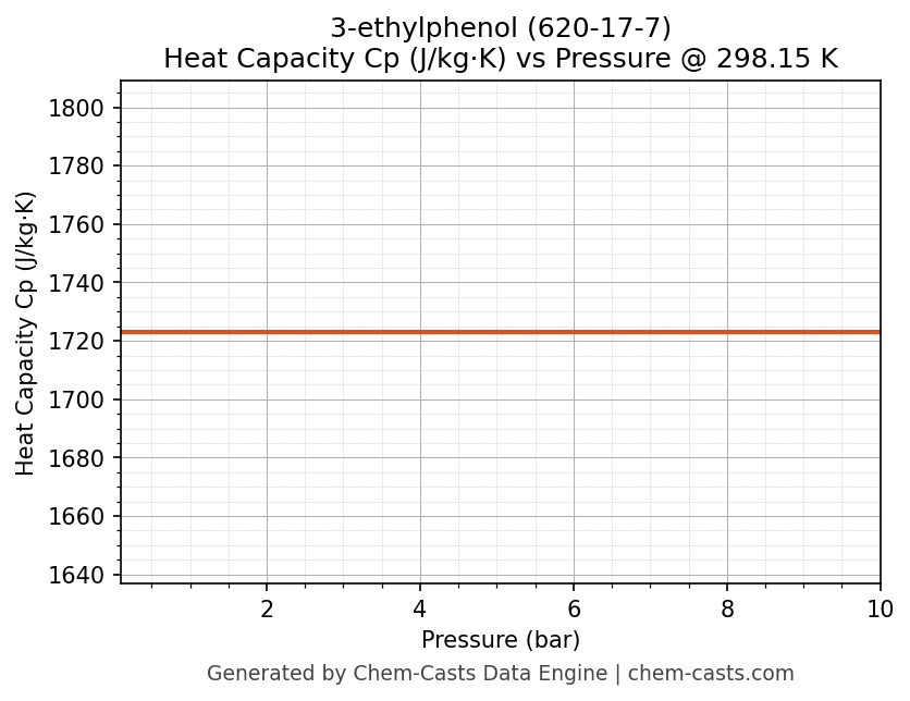 This page presents the pressure-dependent thermodynamic and transport properties of 3-ethylphenol (CAS 620-17-7) calculated at a constant temperature of 298 K (25 °C) over the pressure range 0.10-10 bar.