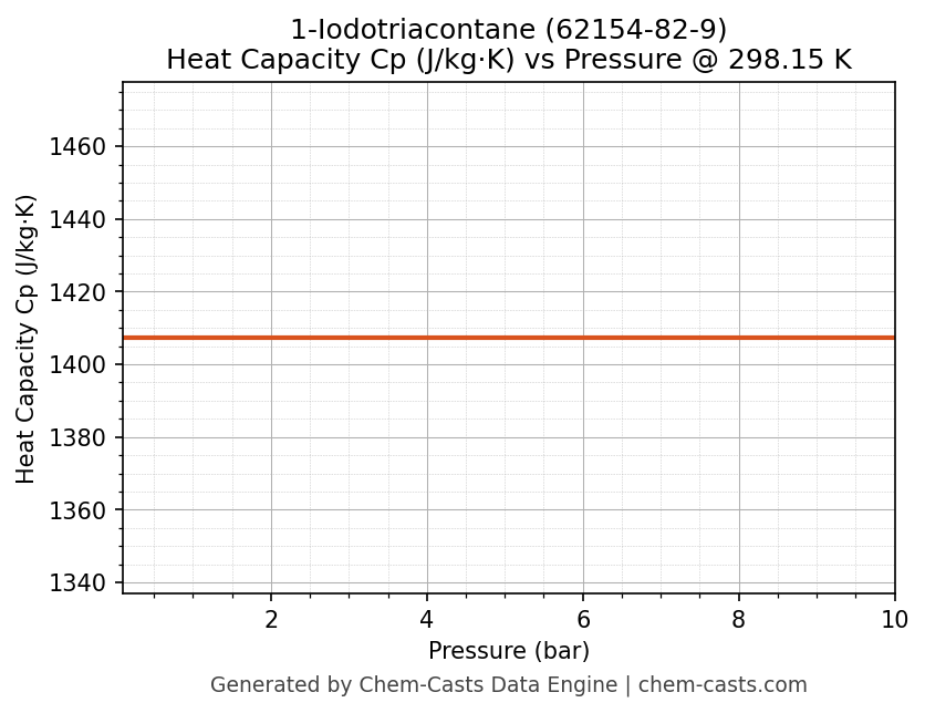 This page presents the pressure-dependent thermodynamic and transport properties of 1-Iodotriacontane (CAS 62154-82-9) calculated at a constant temperature of 298 K (25 °C) over the pressure range 0.10-10 bar.