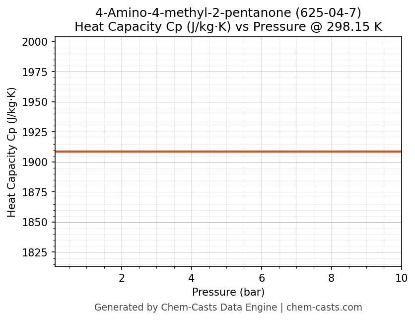 This page presents the pressure-dependent thermodynamic and transport properties of 4-Amino-4-methyl-2-pentanone (CAS 625-04-7) calculated at a constant temperature of 298 K (25 °C) over the pressure range 0.10-10 bar.
