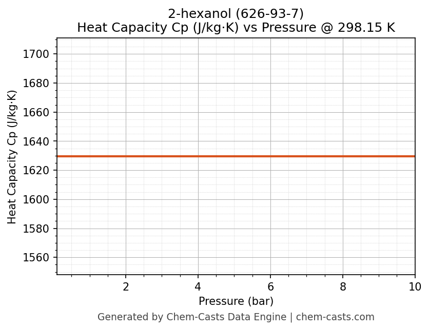 This page presents the pressure-dependent thermodynamic and transport properties of 2-hexanol (CAS 626-93-7) calculated at a constant temperature of 298 K (25 °C) over the pressure range 0.10-10 bar.