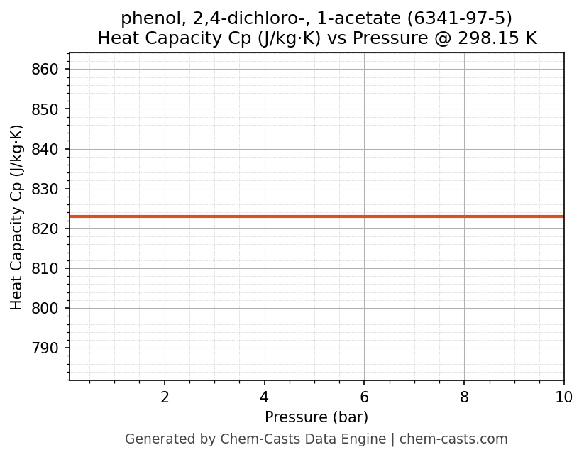 This page presents the pressure-dependent thermodynamic and transport properties of phenol, 2,4-dichloro-, 1-acetate (CAS 6341-97-5) calculated at a constant temperature of 298 K (25 °C) over the pressure range 0.10-10 bar.