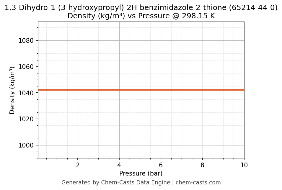 This page presents the pressure-dependent thermodynamic and transport properties of 1,3-Dihydro-1-(3-hydroxypropyl)-2H-benzimidazole-2-thione (CAS 65214-44-0) calculated at a constant temperature of 298 K (25 °C) over the pressure range 0.10-10 bar.