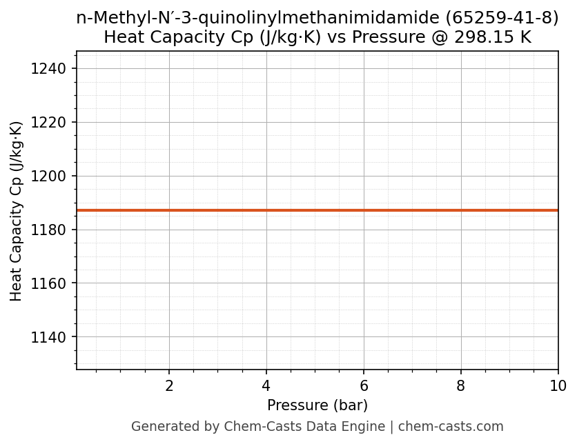 This page presents the pressure-dependent thermodynamic and transport properties of n-Methyl-N′-3-quinolinylmethanimidamide (CAS 65259-41-8) calculated at a constant temperature of 298 K (25 °C) over the pressure range 0.10-10 bar.