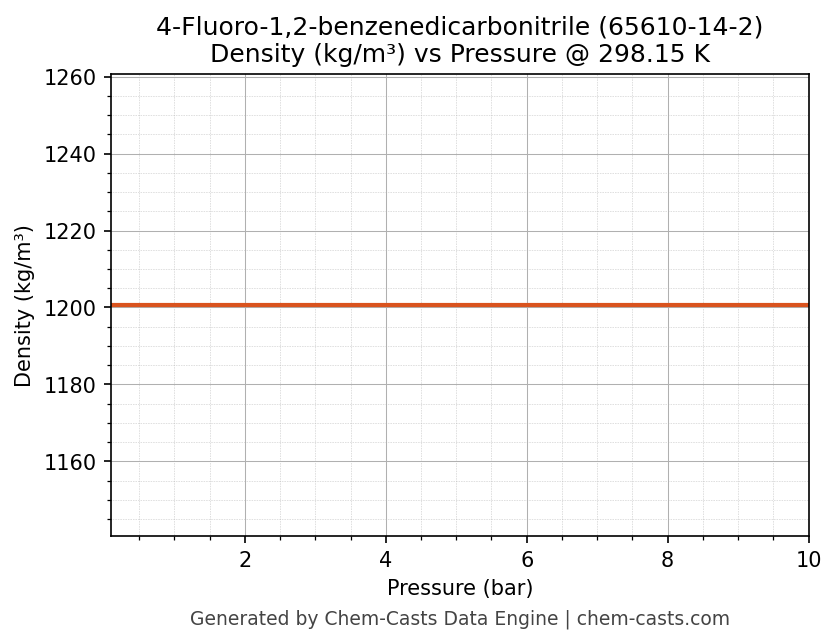 This page presents the pressure-dependent thermodynamic and transport properties of 4-Fluoro-1,2-benzenedicarbonitrile (CAS 65610-14-2) calculated at a constant temperature of 298 K (25 °C) over the pressure range 0.10-10 bar.