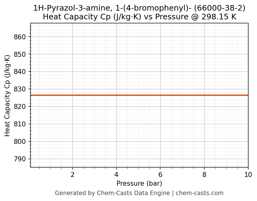 This page presents the pressure-dependent thermodynamic and transport properties of 1H-Pyrazol-3-amine, 1-(4-bromophenyl)- (CAS 66000-38-2) calculated at a constant temperature of 298 K (25 °C) over the pressure range 0.10-10 bar.