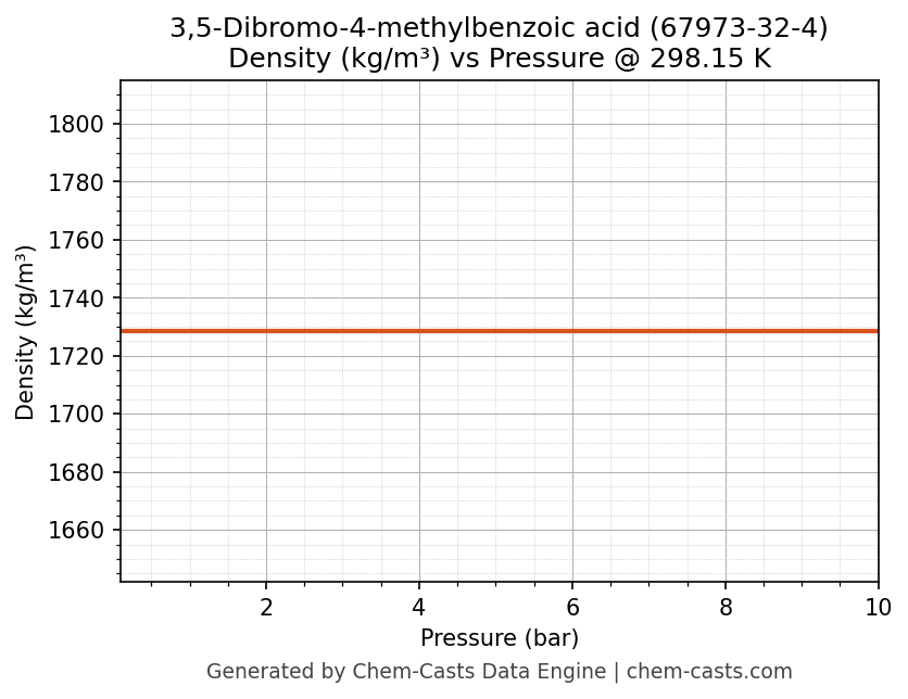 This page presents the pressure-dependent thermodynamic and transport properties of 3,5-Dibromo-4-methylbenzoic acid (CAS 67973-32-4) calculated at a constant temperature of 298 K (25 °C) over the pressure range 0.10-10 bar.