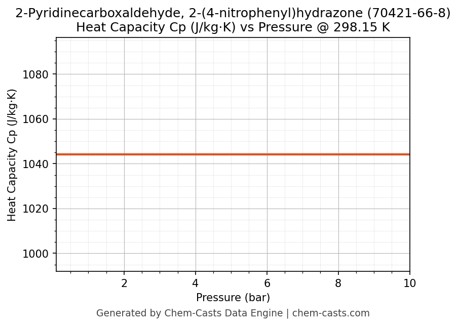 This page presents the pressure-dependent thermodynamic and transport properties of 2-Pyridinecarboxaldehyde, 2-(4-nitrophenyl)hydrazone (CAS 70421-66-8) calculated at a constant temperature of 298 K (25 °C) over the pressure range 0.10-10 bar.