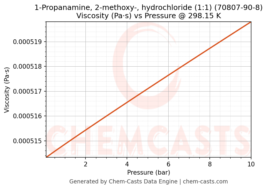 This page presents the pressure-dependent thermodynamic and transport properties of 1-Propanamine, 2-methoxy-, hydrochloride (1:1) (CAS 70807-90-8) calculated at a constant temperature of 298 K (25 °C) over the pressure range 0.10-10 bar.