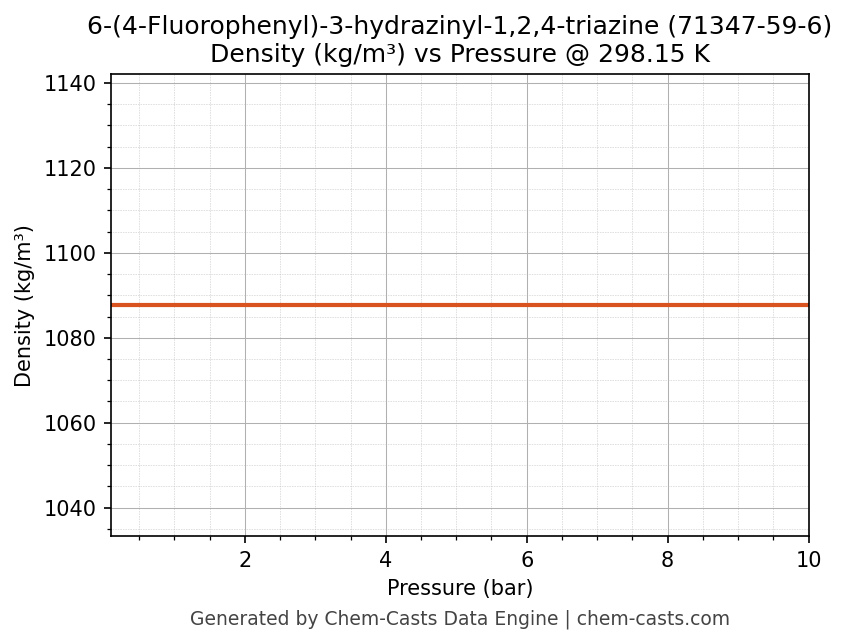 This page presents the pressure-dependent thermodynamic and transport properties of 6-(4-Fluorophenyl)-3-hydrazinyl-1,2,4-triazine (CAS 71347-59-6) calculated at a constant temperature of 298 K (25 °C) over the pressure range 0.10-10 bar.
