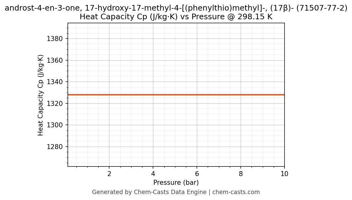 ![Heat Capacity (Cp) vs Pressure chart for androst-4-en-3-one, 17-hydroxy-17-methyl-4-[(phenylthio)methyl]-, (17β)- (CAS 71507-77-2)](https://chemcasts-prod.s3.ap-south-1.amazonaws.com/chem_plots_tconst/71507-77-2-cp-tconst.png)
