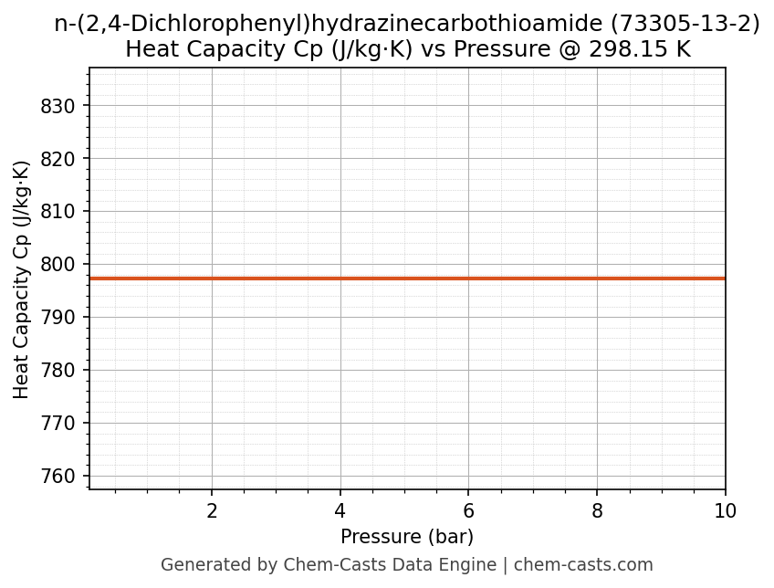 This page presents the pressure-dependent thermodynamic and transport properties of n-(2,4-Dichlorophenyl)hydrazinecarbothioamide (CAS 73305-13-2) calculated at a constant temperature of 298 K (25 °C) over the pressure range 0.10-10 bar.