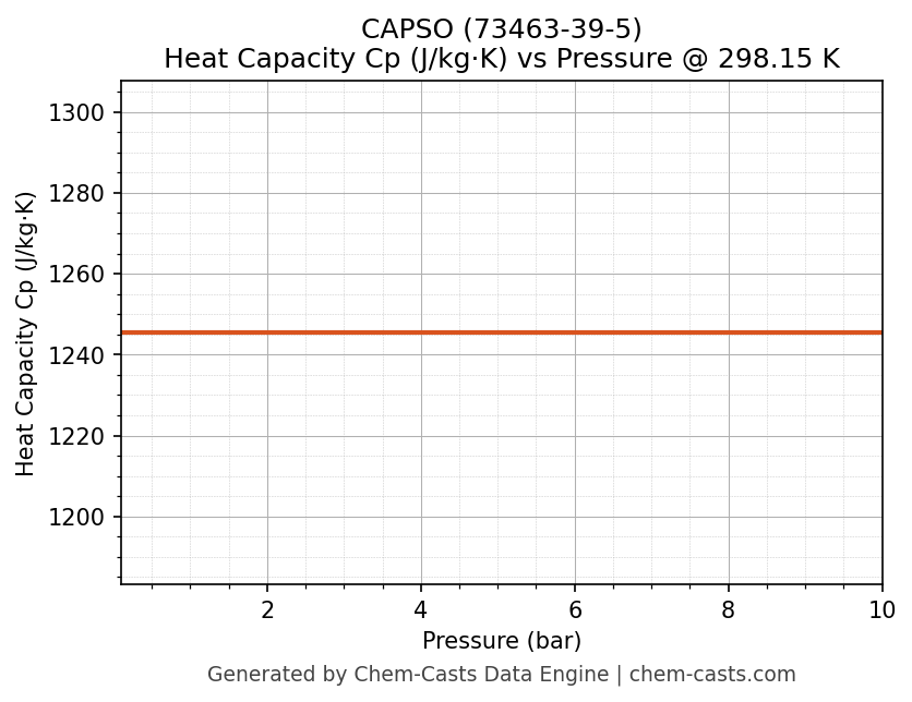 This page presents the pressure-dependent thermodynamic and transport properties of CAPSO (CAS 73463-39-5) calculated at a constant temperature of 298 K (25 °C) over the pressure range 0.10-10 bar.