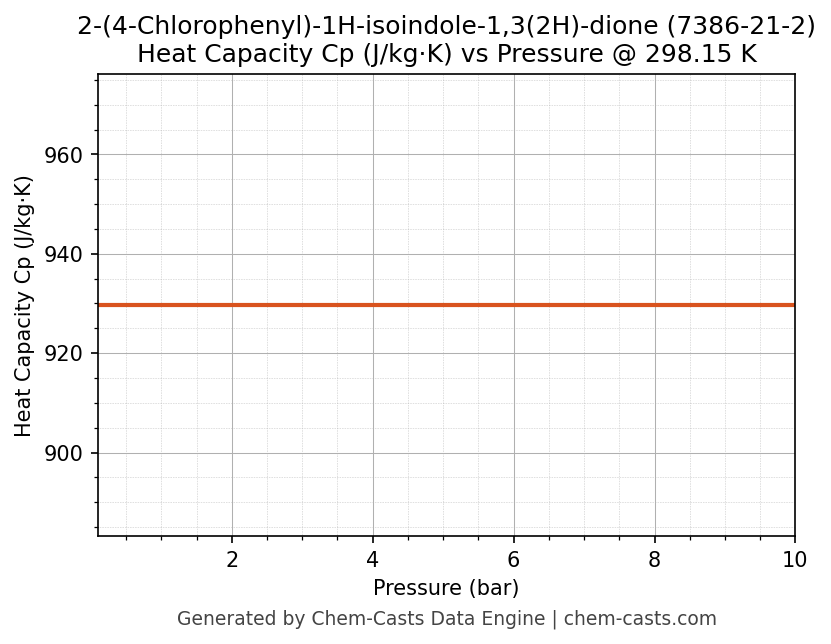 This page presents the pressure-dependent thermodynamic and transport properties of 2-(4-Chlorophenyl)-1H-isoindole-1,3(2H)-dione (CAS 7386-21-2) calculated at a constant temperature of 298 K (25 °C) over the pressure range 0.10-10 bar.