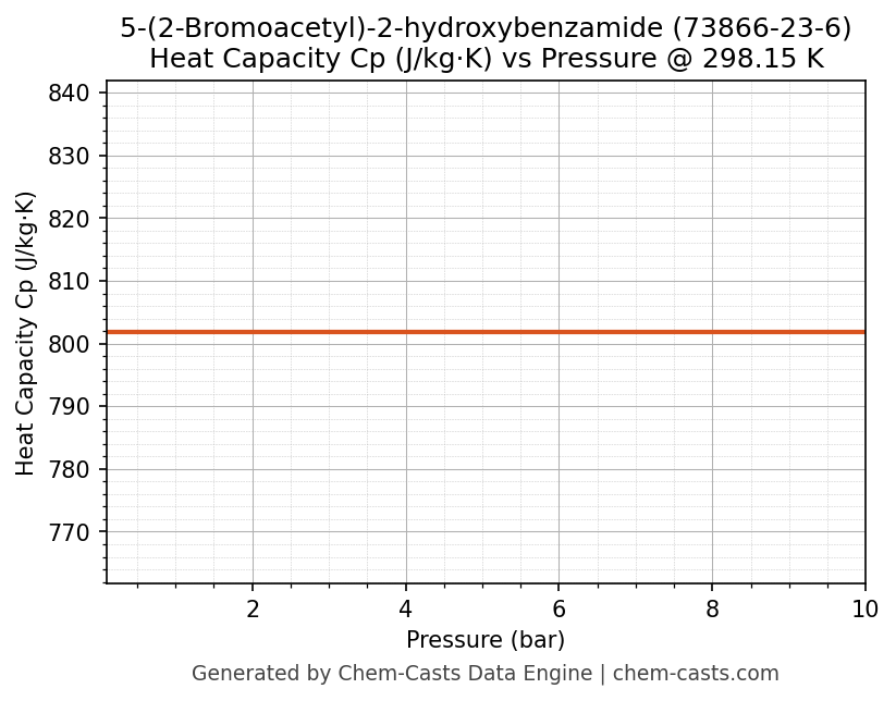 This page presents the pressure-dependent thermodynamic and transport properties of 5-(2-Bromoacetyl)-2-hydroxybenzamide (CAS 73866-23-6) calculated at a constant temperature of 298 K (25 °C) over the pressure range 0.10-10 bar.